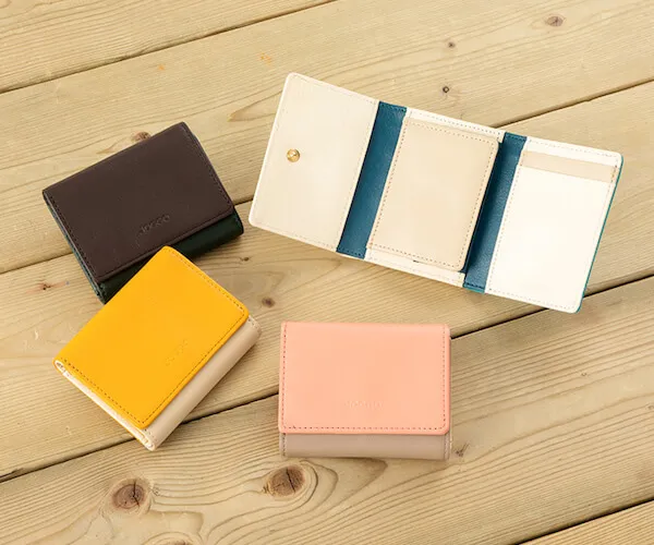 ミドルサイズの三つ折り財布が有名ですが、さらにコンパクトなミニ財布も展開しています。